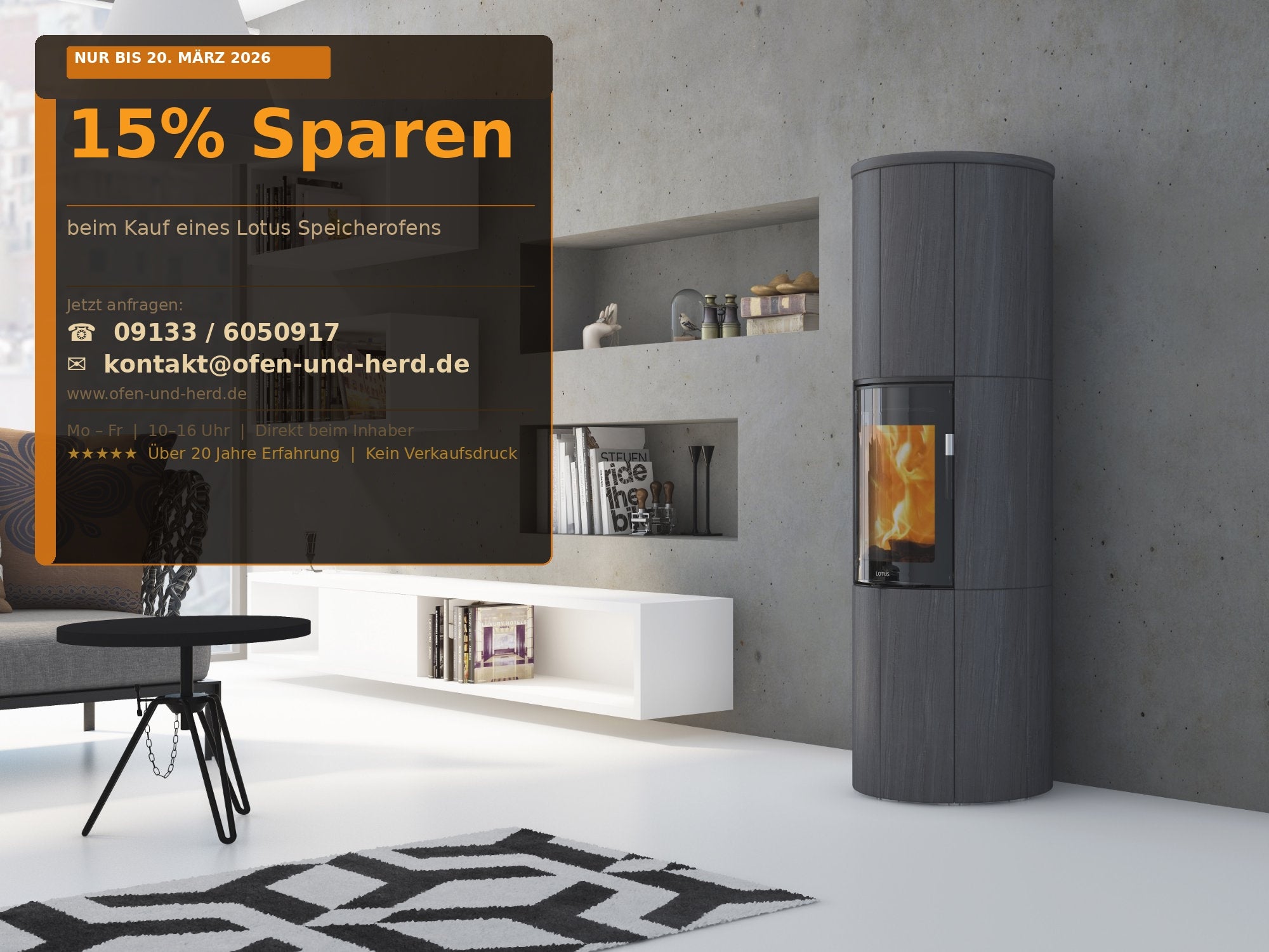 Beim Kauf eine Lotus Speicherofens erhalten Sie 15% Nachlass.